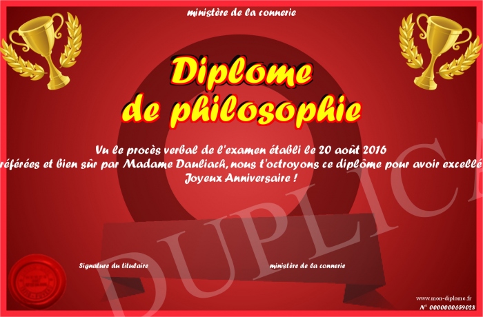 Envoyez par email votre Diplôme de philosophie personalisé