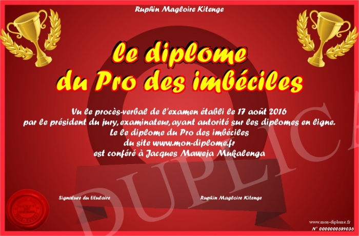 Envoyez par email votre le diplôme du Pro des imbéciles personalisé