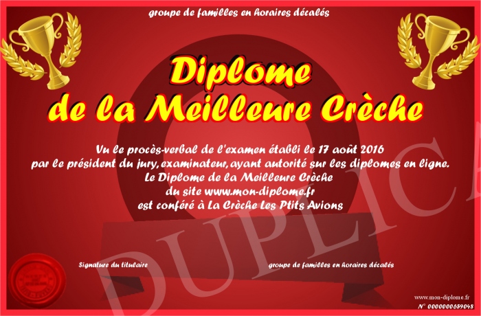 Envoyez par email votre Diplôme de la Meilleure Crèche personalisé
