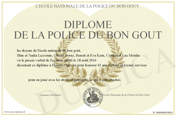 Envoyez par email votre DIPLOME DE LA POLICE DU BON GOUT personalisé