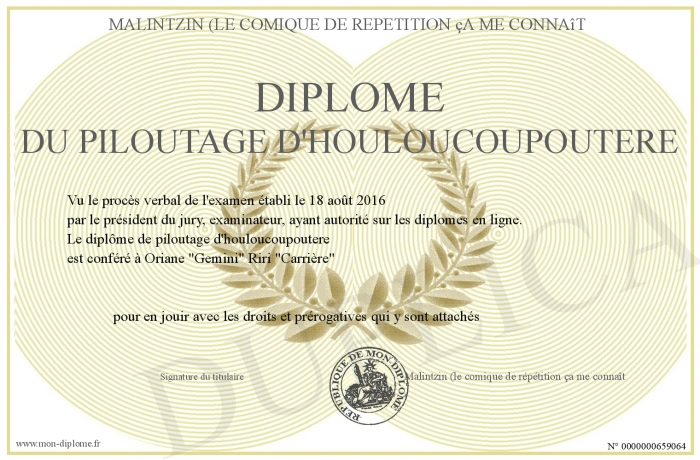 Envoyez par email votre Diplôme du piloutage d'houloucoupoutere personalisé