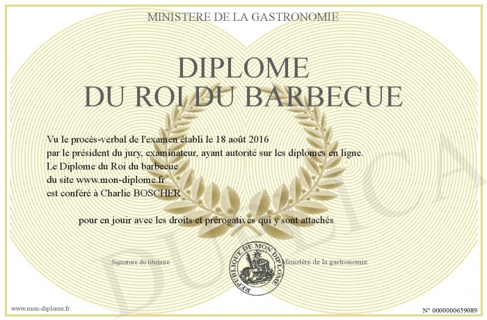 Envoyez par email votre Diplôme du Roi du barbecue personalisé