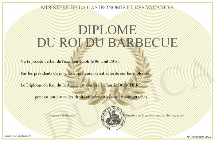 Envoyez par email votre Diplôme du Roi du barbecue personalisé