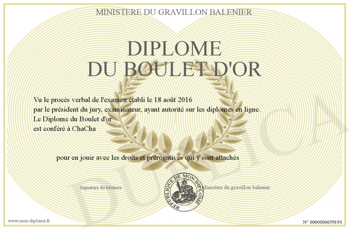 Envoyez par email votre Diplôme du Boulet d'or personalisé