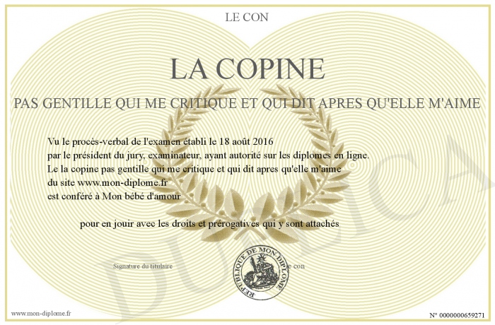 Envoyez par email votre la copine pas gentille qui me critique et qui dit apres qu'elle m'aime personalisé