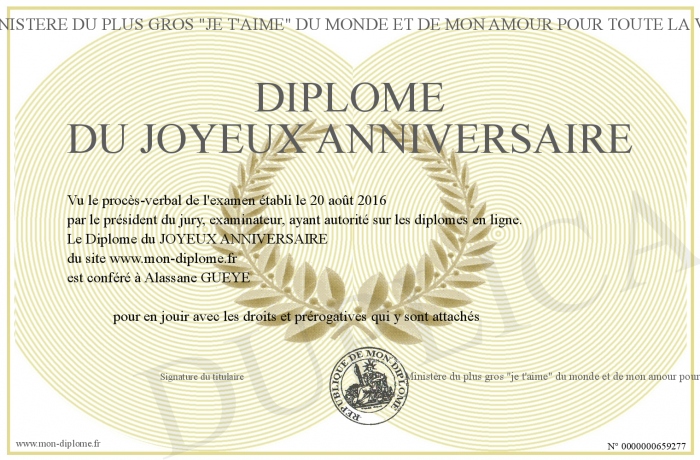 Envoyez par email votre Diplome du JOYEUX ANNIVERSAIRE personalisé