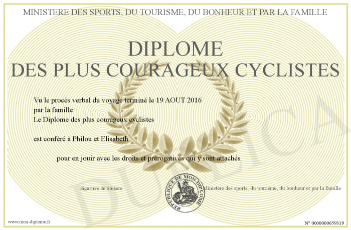 Envoyez par email votre Diplôme des plus courageux cyclistes personalisé