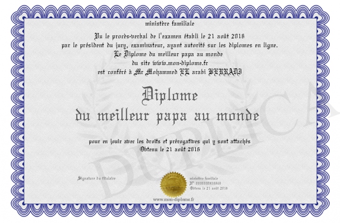 Envoyez par email votre Diplôme du meilleur papa au monde personalisé