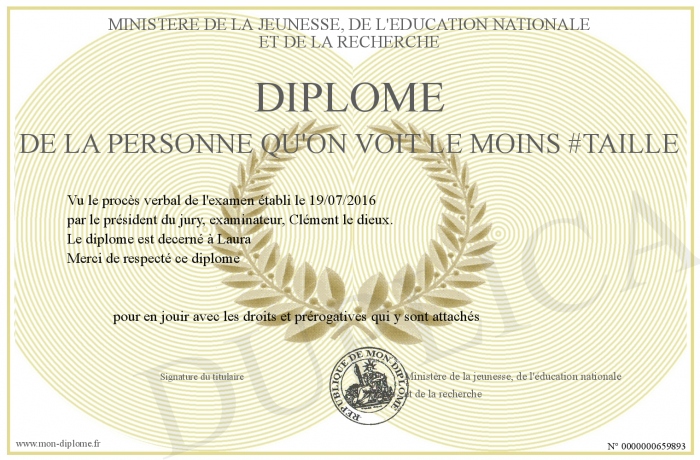 Envoyez par email votre Diplome de la personne qu'on voit le moins #taille personalisé