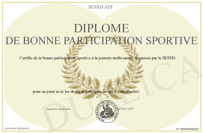 Envoyez par email votre Diplôme de bonne participation sportive personalisé