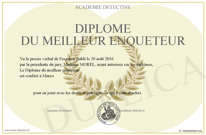 Envoyez par email votre Diplôme du meilleur enqueteur personalisé