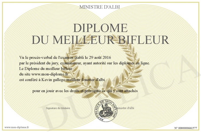 Envoyez par email votre Diplôme du meilleur bifleur personalisé