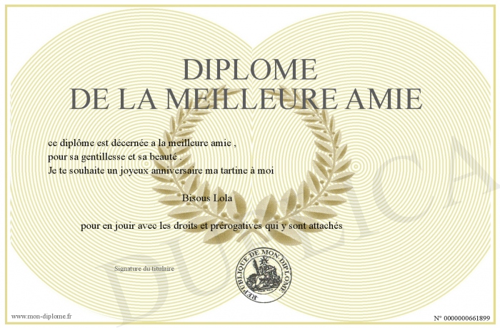 Envoyez par email votre diplôme de la meilleure amie personalisé
