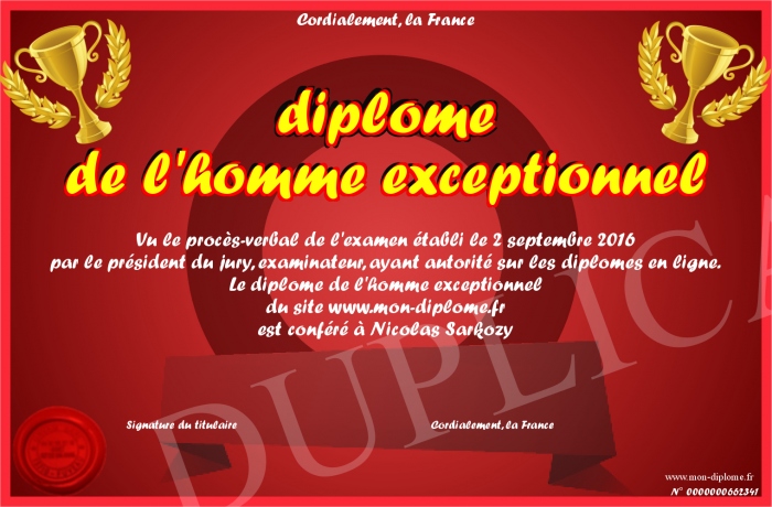 Envoyez par email votre diplôme de l'homme exceptionnel personalisé