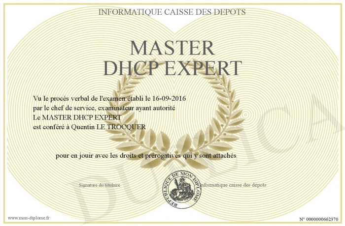 Envoyez par email votre MASTER DHCP EXPERT personalisé