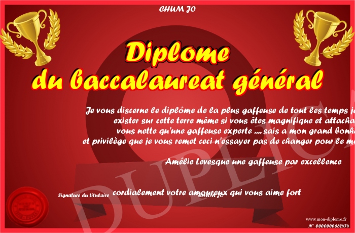 Envoyez par email votre Diplôme du baccalaureat général personalisé