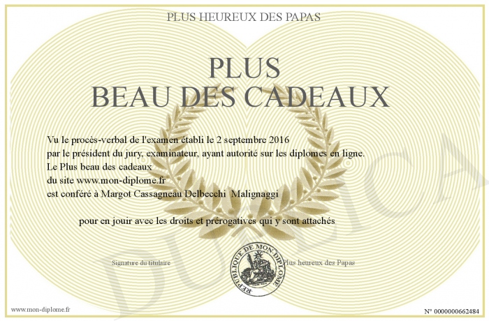 Envoyez par email votre Plus beau des cadeaux personalisé