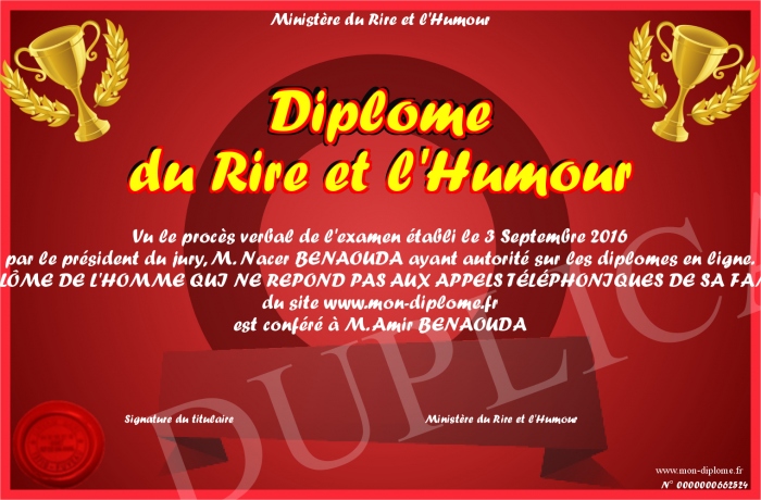 Envoyez par email votre Diplôme du Rire et l'Humour personalisé
