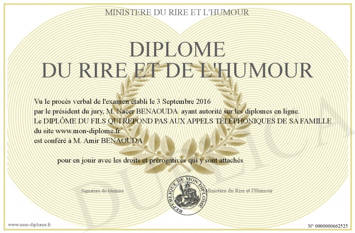 Envoyez par email votre Diplôme du Rire et de l'Humour personalisé