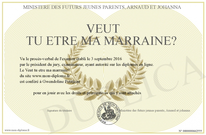 Envoyez par email votre Veut tu etre ma marraine? personalisé