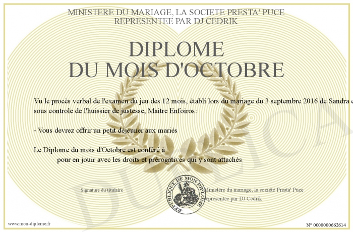 Envoyez par email votre Diplôme du mois d'Octobre personalisé