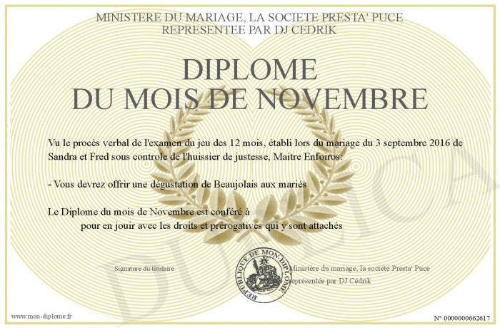 Envoyez par email votre Diplôme du mois de Novembre personalisé
