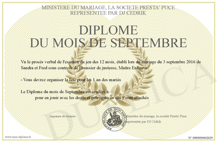 Envoyez par email votre Diplôme du mois de Septembre personalisé