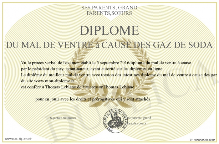 Envoyez par email votre diplôme du mal de ventre à cause des gaz de soda personalisé