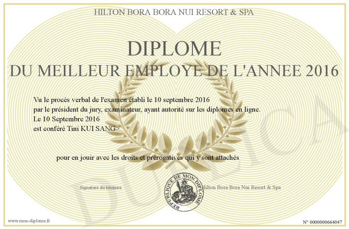 Envoyez par email votre Diplôme du Meilleur Employé de l'Année 2016 personalisé