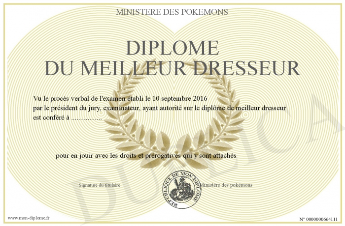 Envoyez par email votre Diplôme du Meilleur Dresseur personalisé