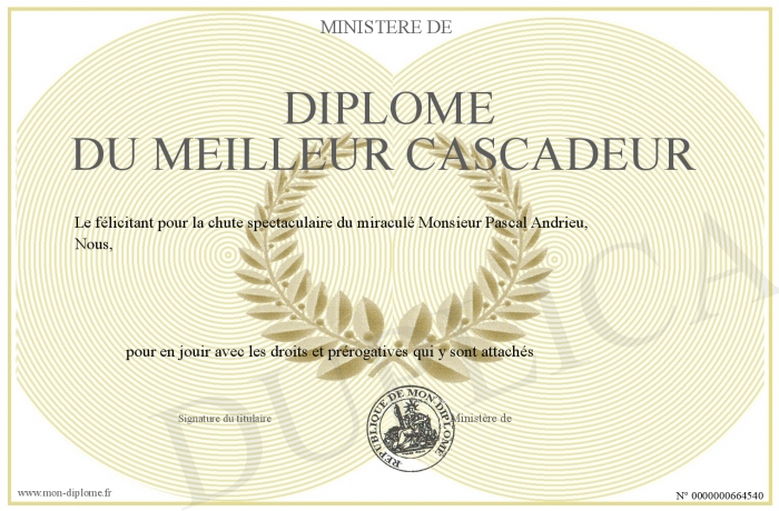 Envoyez par email votre Diplôme du Meilleur Cascadeur personalisé