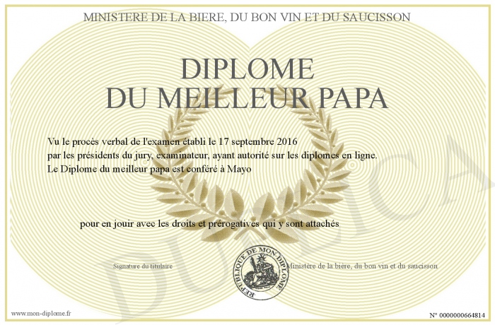 Envoyez par email votre Diplôme du meilleur papa personalisé