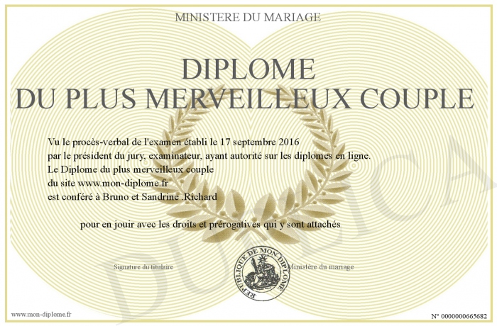 Envoyez par email votre Diplôme du plus merveilleux couple personalisé