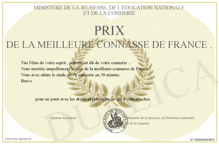 Envoyez par email votre prix de la meilleure connasse de France . personalisé