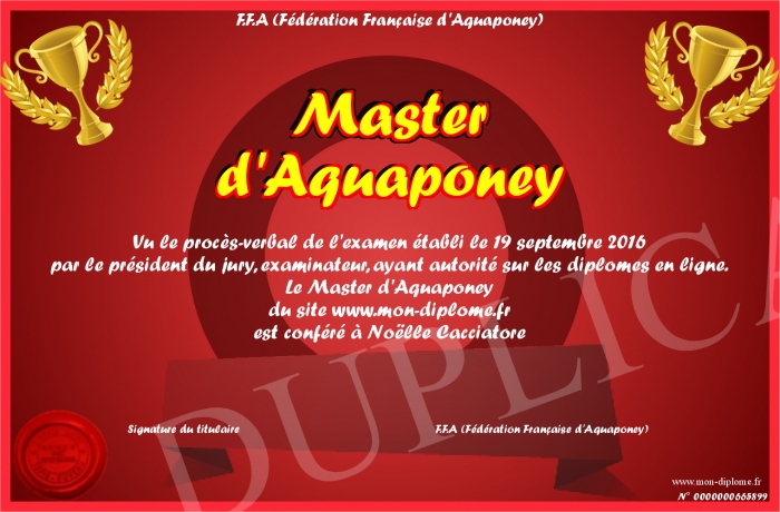 Envoyez par email votre Master d'Aquaponey personalisé