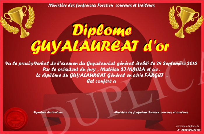 Envoyez par email votre Diplôme GUYALAUREAT d'or personalisé