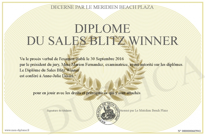 Envoyez par email votre Diplôme du SALES BLITZ WINNER personalisé