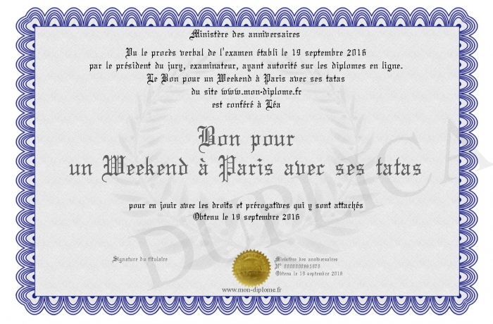 Envoyez par email votre Bon pour un Weekend à Paris avec ses tatas personalisé