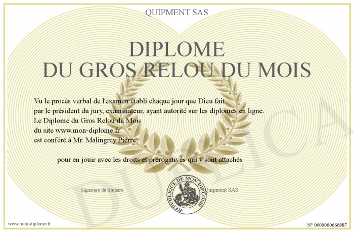 Envoyez par email votre Diplôme du Gros Relou du Mois personalisé