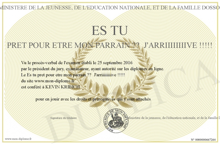 Envoyez par email votre Es tu pret pour etre mon parrain ?? J'arriiiiiiiive !!!!! personalisé