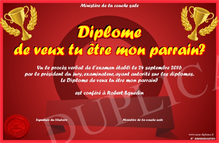 Envoyez par email votre Diplôme de veux tu être mon parrain? personalisé
