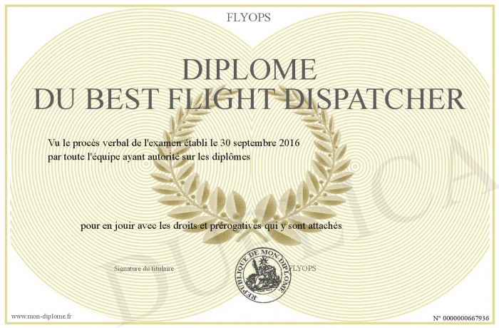 Envoyez par email votre Diplôme du BEST FLIGHT DISPATCHER personalisé