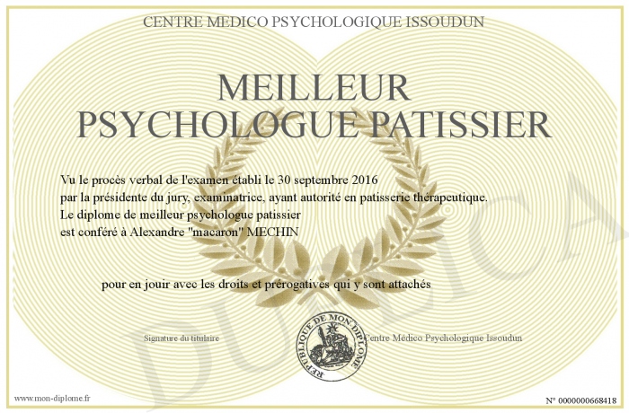 Envoyez par email votre Meilleur Psychologue Patissier personalisé