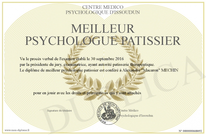 Envoyez par email votre Meilleur Psychologue Patissier personalisé