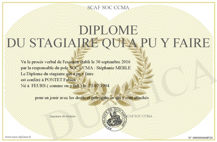 Envoyez par email votre Diplôme du stagiaire qui a pu y faire personalisé
