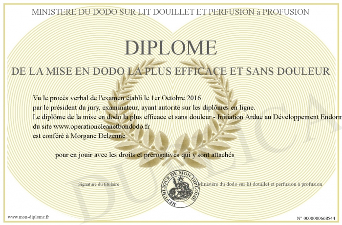 Envoyez par email votre Diplôme de la mise en dodo la plus efficace et sans douleur personalisé