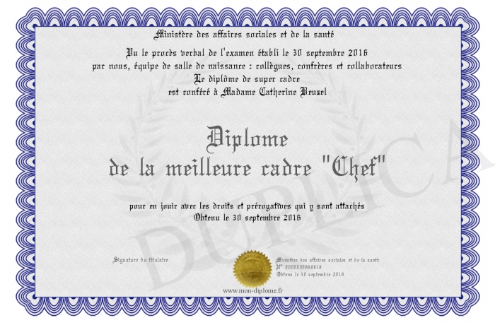 Envoyez par email votre Diplôme de la meilleure cadre -Chef- personalisé