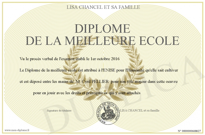 Envoyez par email votre Diplôme de la meilleure école personalisé