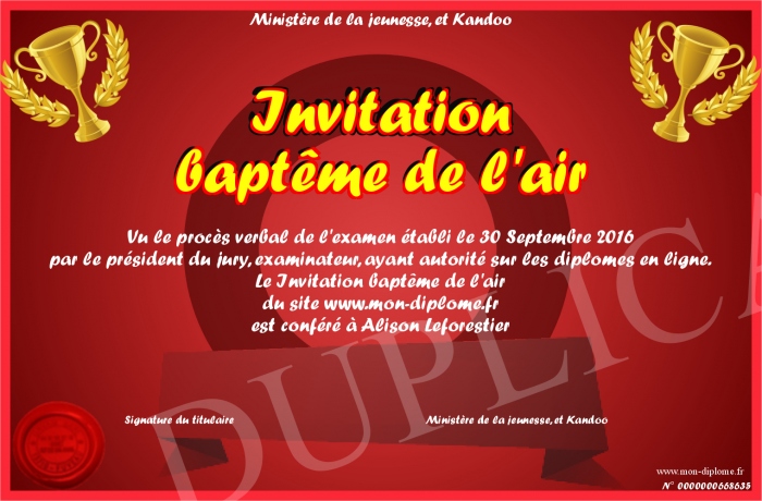 Envoyez par email votre Invitation baptême de l'air personalisé