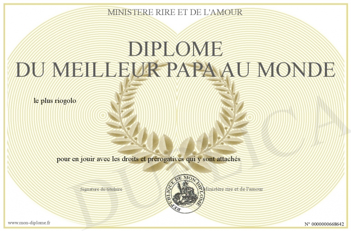Envoyez par email votre Diplôme du meilleur papa au monde personalisé